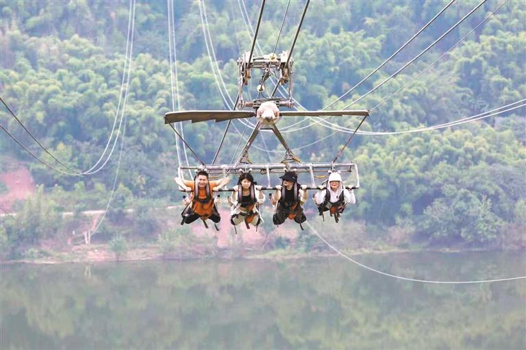 近日,涪陵区美心红酒小镇的飞鹰索道迎来了客流高峰,各地游客纷纷慕名而来,体验这场惊险又刺激的空中之旅。